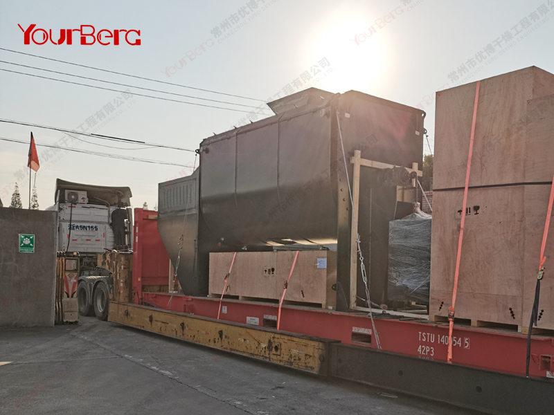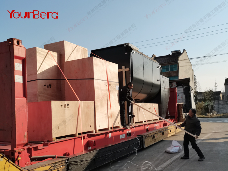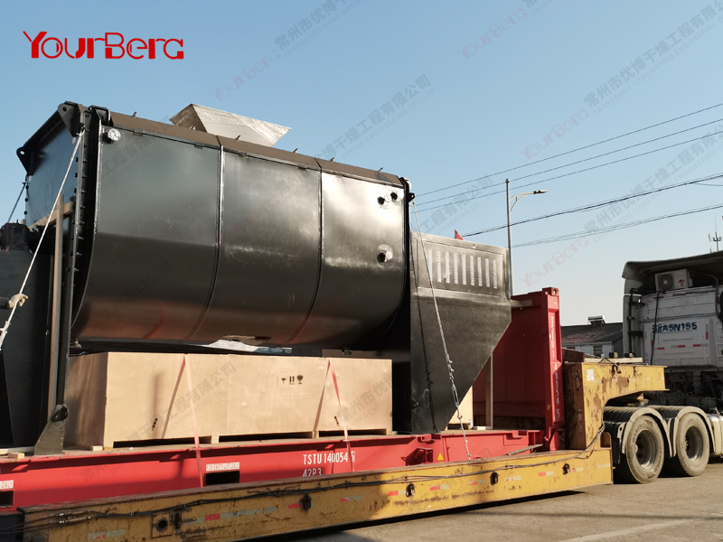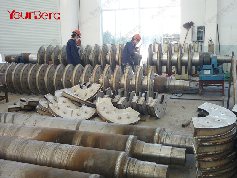 空心軸上密集排列著楔型中空漿葉,熱介質經空心軸流經漿葉。單位有效容積內傳熱面積很大,熱介質溫度從-40℃到320℃,可以是水蒸汽,也可以是液體型:如熱水、導熱油等。間接傳導加熱,沒有攜帶空氣帶走熱量,熱量均用來加熱物料。熱量損失僅為通過器體保溫層向環(huán)境的散熱。楔型漿葉傳熱面具有自清潔功能。物料顆粒與楔型面的相對運動產生洗刷作用,能夠洗刷掉楔型面上附著物料,使運轉中一直保持著清潔的傳熱面。漿葉干燥機的殼體為Ω型,殼體內一般安排二到四根空心攪拌軸。殼體有密封端蓋與上蓋,防止物料粉塵外泄而充分發(fā)揮作用。