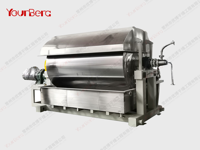 3、啟動電機(jī),主滾筒動運(yùn)轉(zhuǎn)平穩(wěn),溫度升高后加入物料后調(diào)整電機(jī)轉(zhuǎn)速及物料在滾筒上薄膜均勻程度來控制物料終含水量。