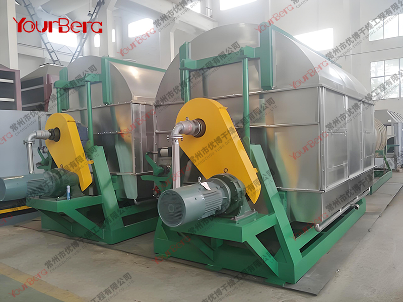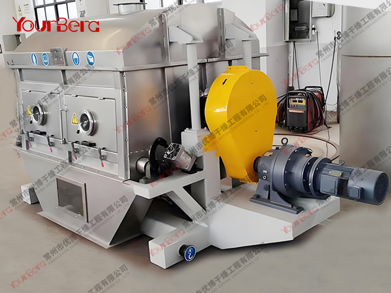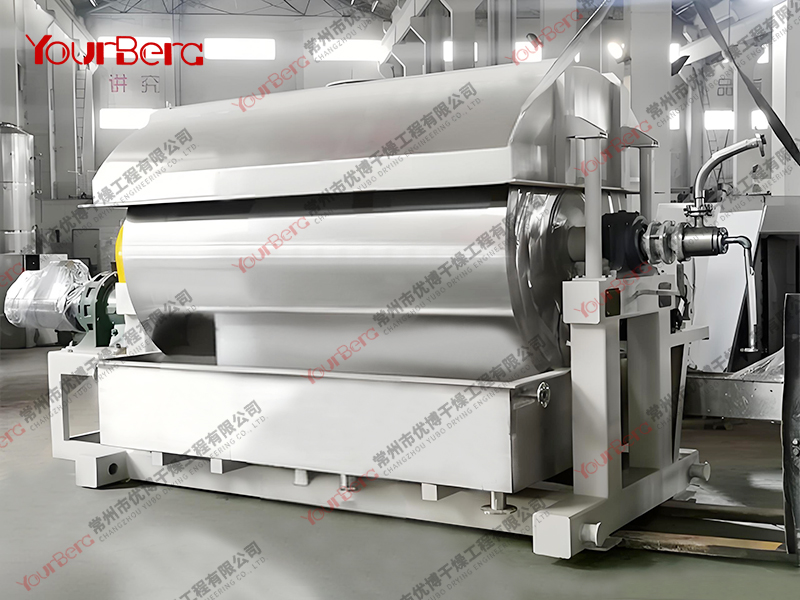 3、干燥時間短。物料的干燥周期一般只有10-300秒,在適合于熱敏性物料。若將滾筒干燥機設置在真空器中,則可在減壓條件下運行。