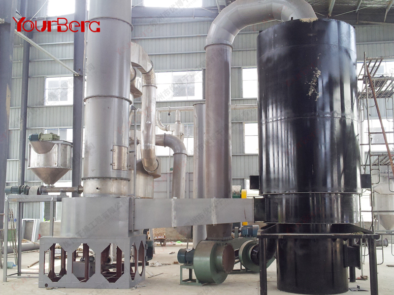干燥階段:該過程是熱空氣蒸發(fā)物料水分的過程。未完成干燥的物料受到重力的作用下落,繼續(xù)破碎與干燥;完成干燥的物料會向上運(yùn)動,進(jìn)行下一階段。