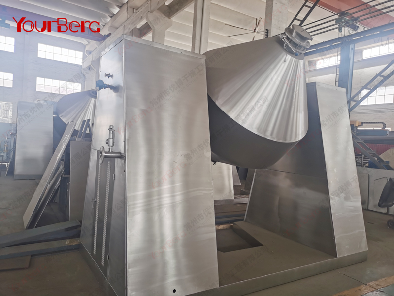 ◎在動力驅動下,罐體作緩慢旋轉,罐內物料不斷地混合,從而達到強化干燥的目的。