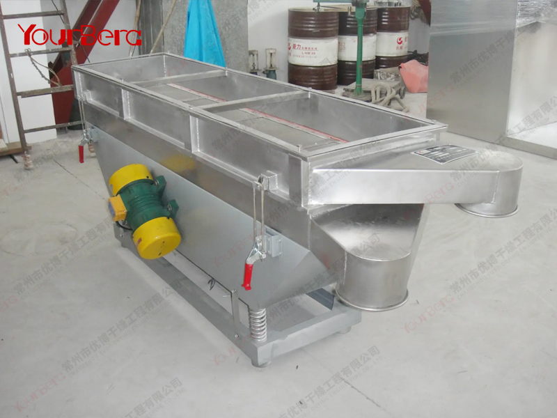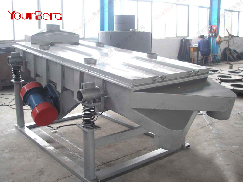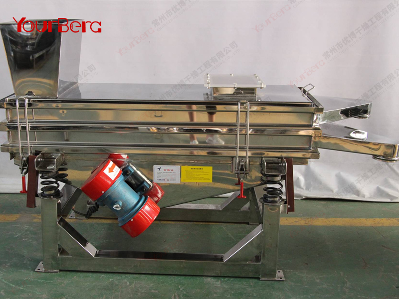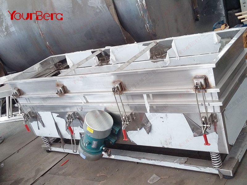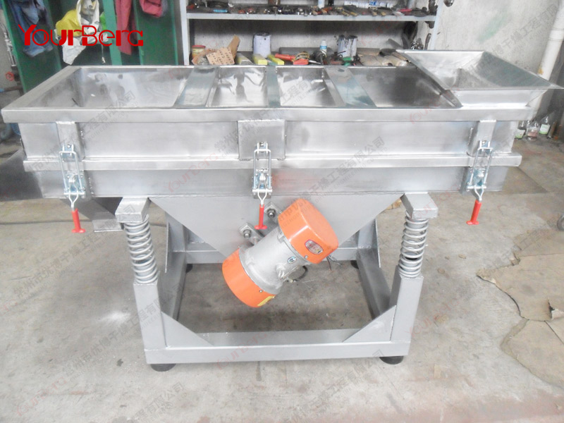 本機(jī)上部采用快拆式手柄,把整機(jī)連成一個(gè)整體,上蓋全密封、有效防止物料在過篩時(shí)由于振動而產(chǎn)生粉塵飛揚(yáng)。篩體下部安裝振動電機(jī),有效保證了物料的結(jié)構(gòu)緊湊,下部采用彈簧減振,使整機(jī)在平穩(wěn)狀態(tài)下工作。下面底座采用可調(diào)式,可調(diào)節(jié)正在過篩時(shí)的篩面傾斜角度,根據(jù)物料特性以取得過篩效果。